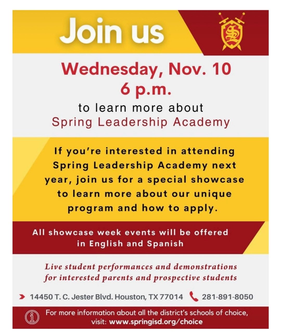 Spring Leadership Academy is the new school of choice in Spring ISD for current 5th 6th and 7th grade students. Log In Sign Up. Spring Leadership Academy located in Houston Texas - TX.